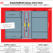 Erläuterung: Die Spielform sieht vor, dass zwei Teams (Vereine) gegeneinander zeitgleich mit zwei unterschiedlichen Teamstärken antreten. In der Halle wird 4 gegen 4 auf Handballtore gespielt. Daneben spielen 3 gegen 3 auf vier Klapptore.